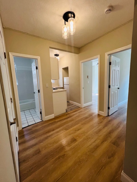 Kitchen, bathroom, and unit flooring to be renovated, door/closet to be added to left room.